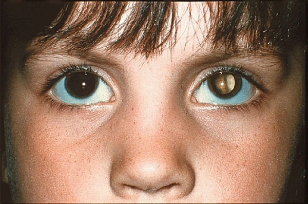 5. The child brought to the doctors office with abnormal appearance of the pupil, vision deterioration. What is the gene associated with this disease?