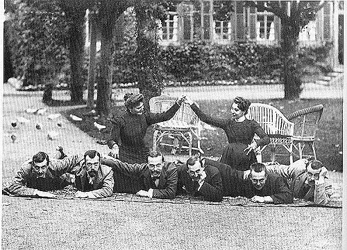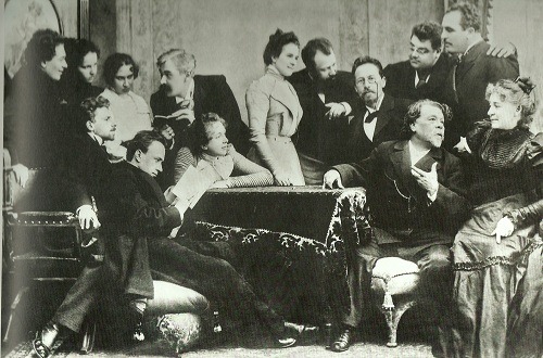МХАТ. Один из его основателей в 1897 году Константин Станиславский. Первый успех театра ждал в 1898 году с пьесой Чехова “Чайка”. Кстати, попробуйте Палыча найти на фото.