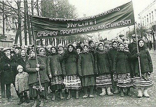 Люди из Орехово-Зуево отмечают 12 годовщину революции. 1929 год. Вперед поставили четырех женщин в сапогах (и то наверно отобранных у последних интеллигентов) остальные до сих пор в лаптях. Модернизацией и не пахнет.