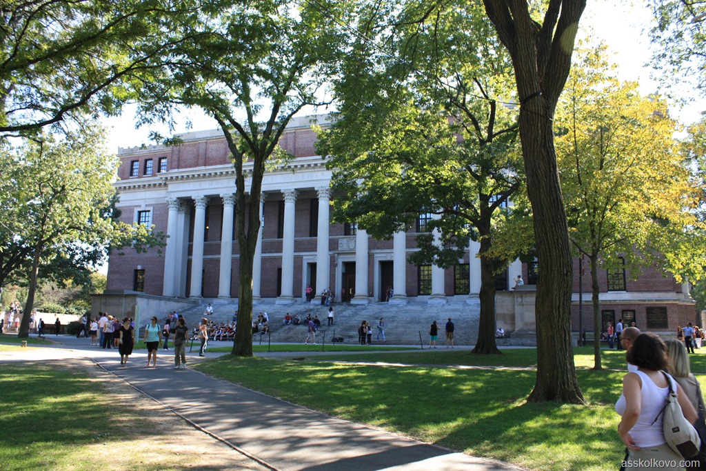 В прошлый уикенд, в Новой Англии стояла отличная погода для пеших прогулок (25-27C). Таким подарком природы мы не могли пренебречь и решили насладиться последними теплыми днями осени, прогуливаясь по окрестностям Гарварда. Сам городок Кембридж штат Массачусетс был назван пуританами в честь старейшего, одноименного Британского университета. Знаменит этот город не только своим названием, но и тем, что на его территории расположены два самых известных университета: Гарвардский и Массачусетский Институт Технологий (MIT, в котором расшифровали ДНК человека, изобрели всемирную сеть WWW и синтезировали синтетический пенициллин).