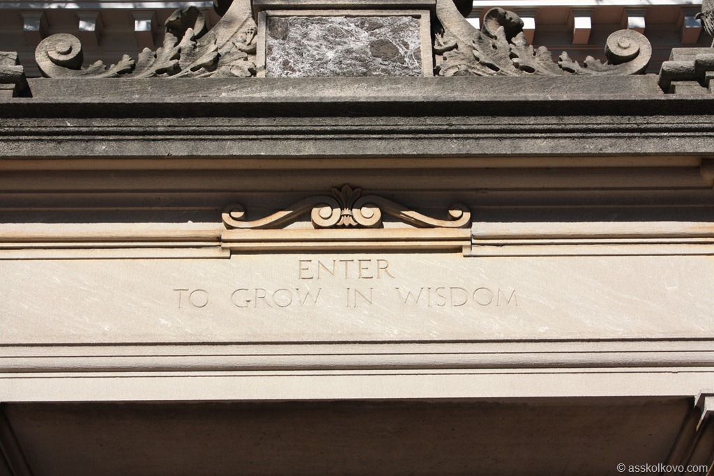 Ворота на территорию Гарварда (Harvard Yard). Надпись: “Войди, чтобы вырасти в мудрости”.