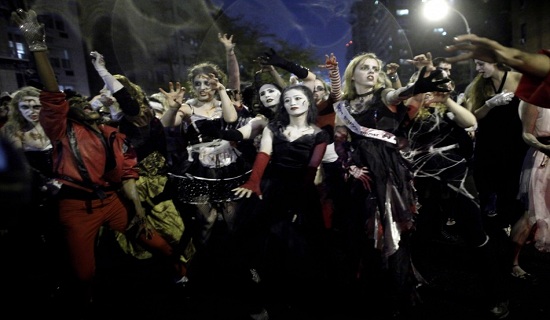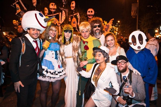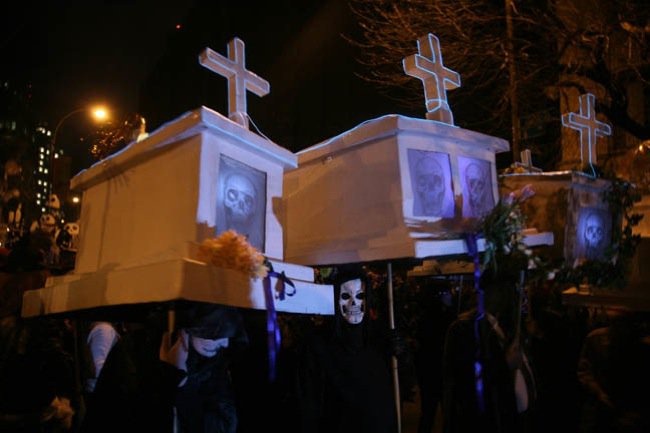Ну, а к вечеру к шестой Авеню, где собственно и должно произойти самое главное событие, можно уже было оказаться в кругу танцующих скелетов, дьяволов и сотни живых мертвецов.