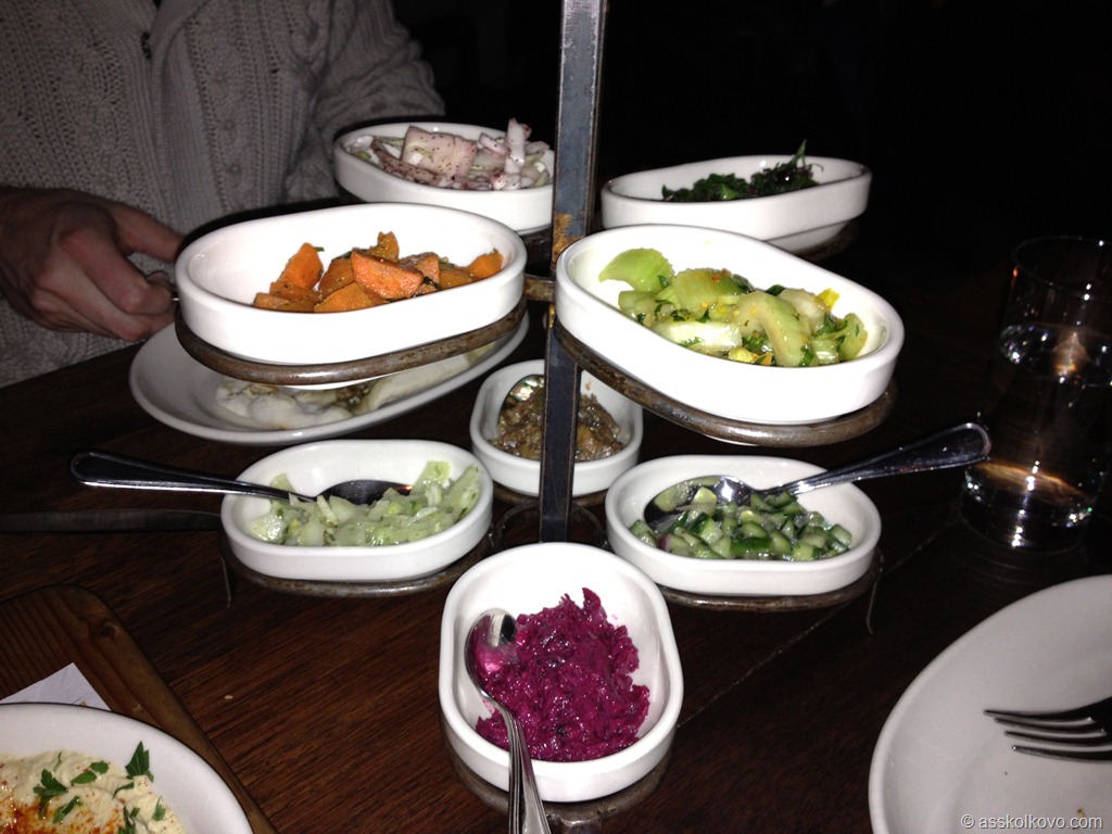 18. Кстати, нам заранее удалось забронировать столик в лучшем ресторане Филадельфии – Захав (Zahav) специализирующимся на еврейско – европейской кухне. Философия этого ресторана маленькие порции, но подается несколько блюд.