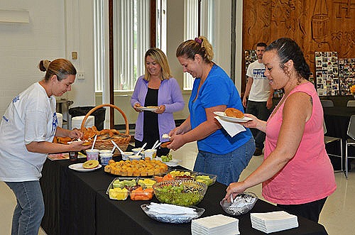 После службы проходит онег (фуршет). Обычно у кого в жизни проходит знаменательное событие: день рождение, годовщина, выпускной ребенка в школе, тот и организует на свои деньги небольшое угощение. Помогают накрыть/убрать волонтеры общины.