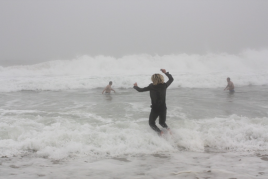 Нас была целая компания, поэтому не смотря на небольшой шторм мы побежали купаться