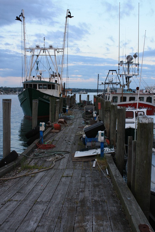 Пристань коммерческих рыболовных судов в небольшом заливе. Невкусно пахнет рыбой