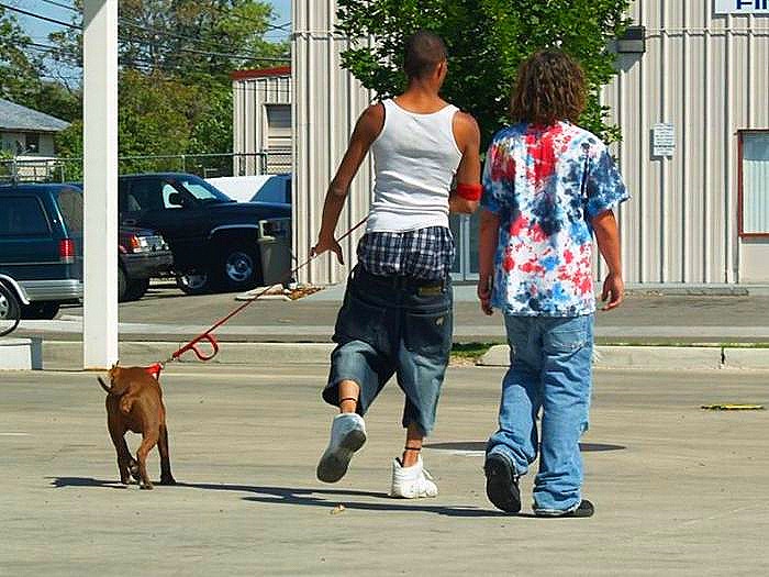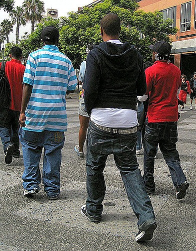 Очень распространены приспущенные штаны (sagging pants) Даже появилось такое слово, как – sagger (тот, кто носит таким образом штаны)