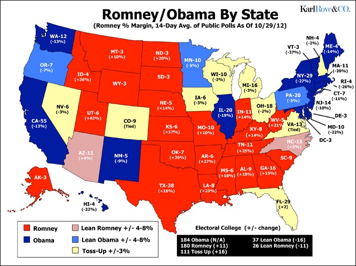 В связи с этим, до сих пор сказать кто победит завтра на выборах нельзя (хотя преимущество пока у Обамы).