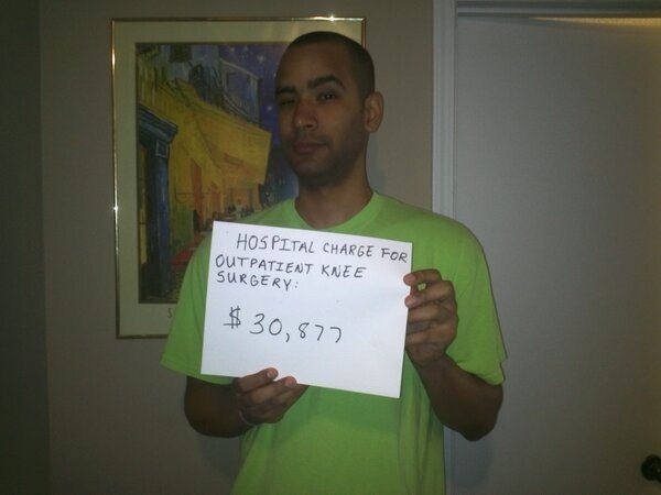 Вот парень, которому реконструировали связку колена в поликлинике за 30 тысяч $ (источник CNN), а девушке зашили рану от укуса собаки за 22 тысячи $.