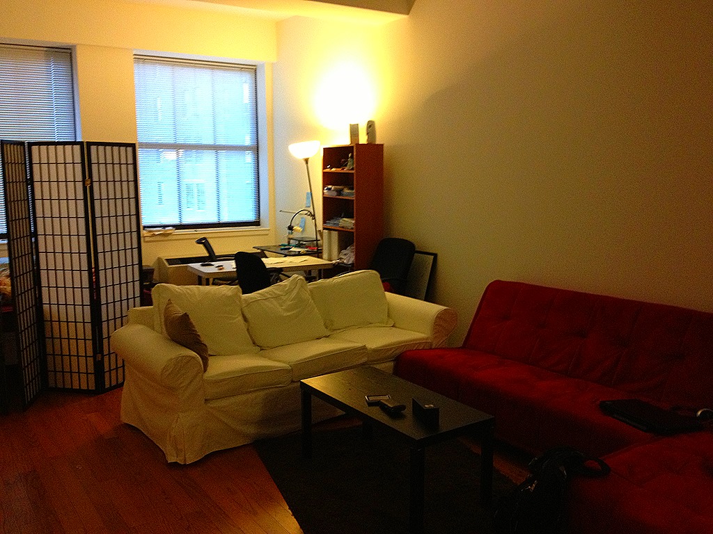Гостиная. В связи с тем, что я жил временно и бесплатно, то у меня не было своей комнаты. Спал я за ширмой в гостиной.