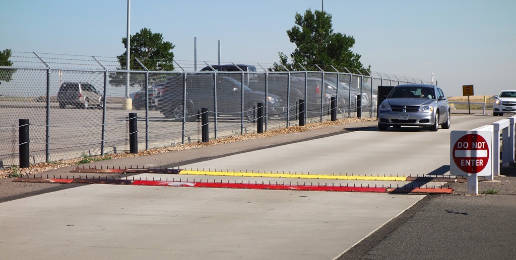 Забегу вперед и покажу вам как с таким автопарком удалось избежать очереди на сдачу автотранспорта. Например для того, чтобы сдать машину, нужно просто выбрать один из нескольких въездов на парковку. По этим шипам можно только заехать, выехать нельзя. Бросаешь машину на парковочном месте, садишься в автобус и в аэропорт. На парковке ошивается огромная толпа бездельников, которая проверяет авто и уровень горючего. Если что-то не так, то с твоей кредитной карты сиюминутно (пока вытаскиваешь свой чемодан из багажника) снимают деньги. С нас сняли 20 баксов т.к. до полного бака не хватило пару галлонов бензина. Никуда идти не нужно, искать кого-то и ждать тоже. Весь процесс от заезда на парковку и погружение в автобус занял 7 минут (приём машины менее 2-х минут).