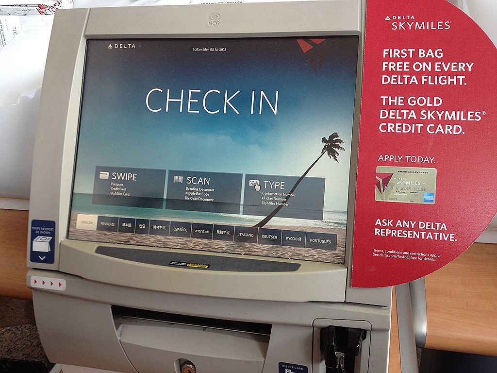 При регистрация на домашний рейс из Денвера в Нью-Йорк, внизу можно выбрать интерфейс на любом языке, в том числе и на русском (второй справа).