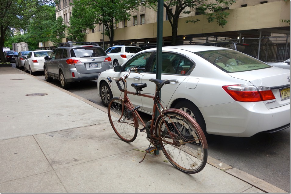 Многие ньюйоркцы покупают б/у велики на крэйглисте за 50 баксов и две цепи с замком по 100 $ за штуку. Открытую машину с ключами могут и не угнать, а старый велик сопрут обязательно.