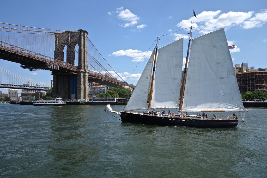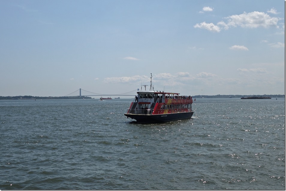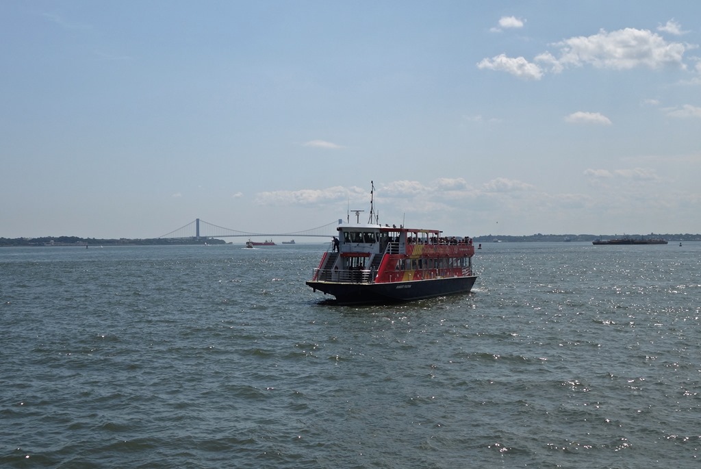 8. Экскурсионный паром на фоне далекого моста имени Джоржа Вашингтона.