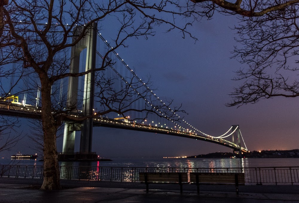 12. Мы двигались в сторону Брайтон-Бич и не могли не остановится и насладится видом на мост Веррацано-Нарроус: