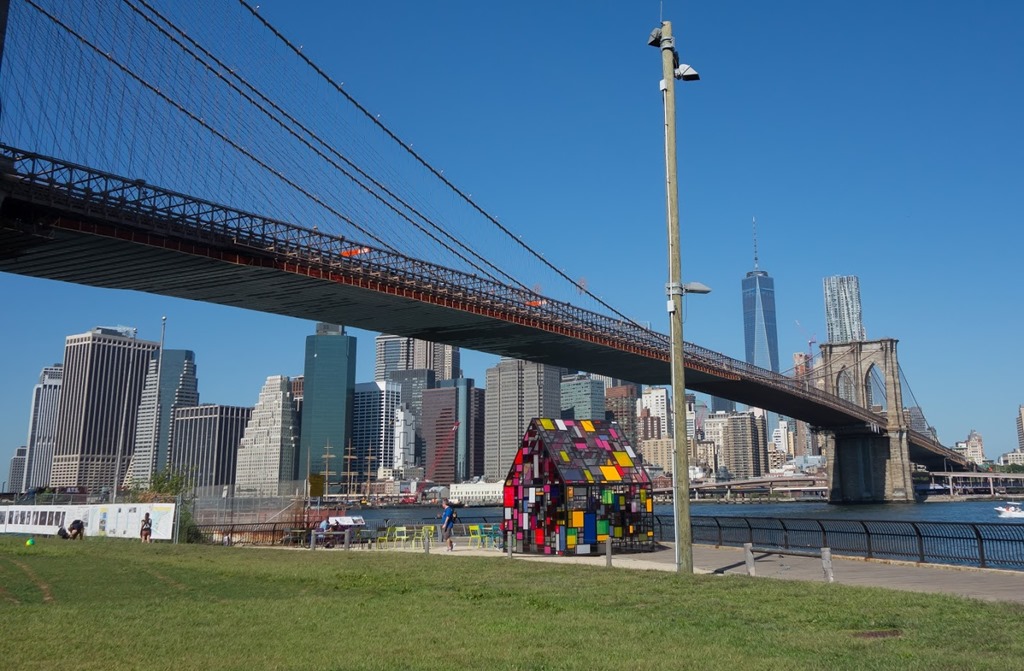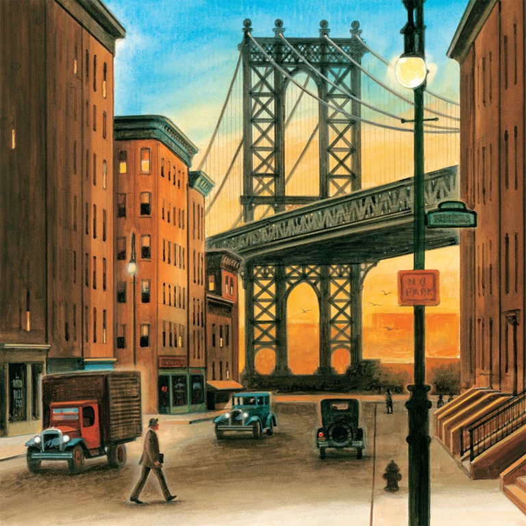 А вот и Дамбо. В центре картины изображен Мнхеттенский мост.