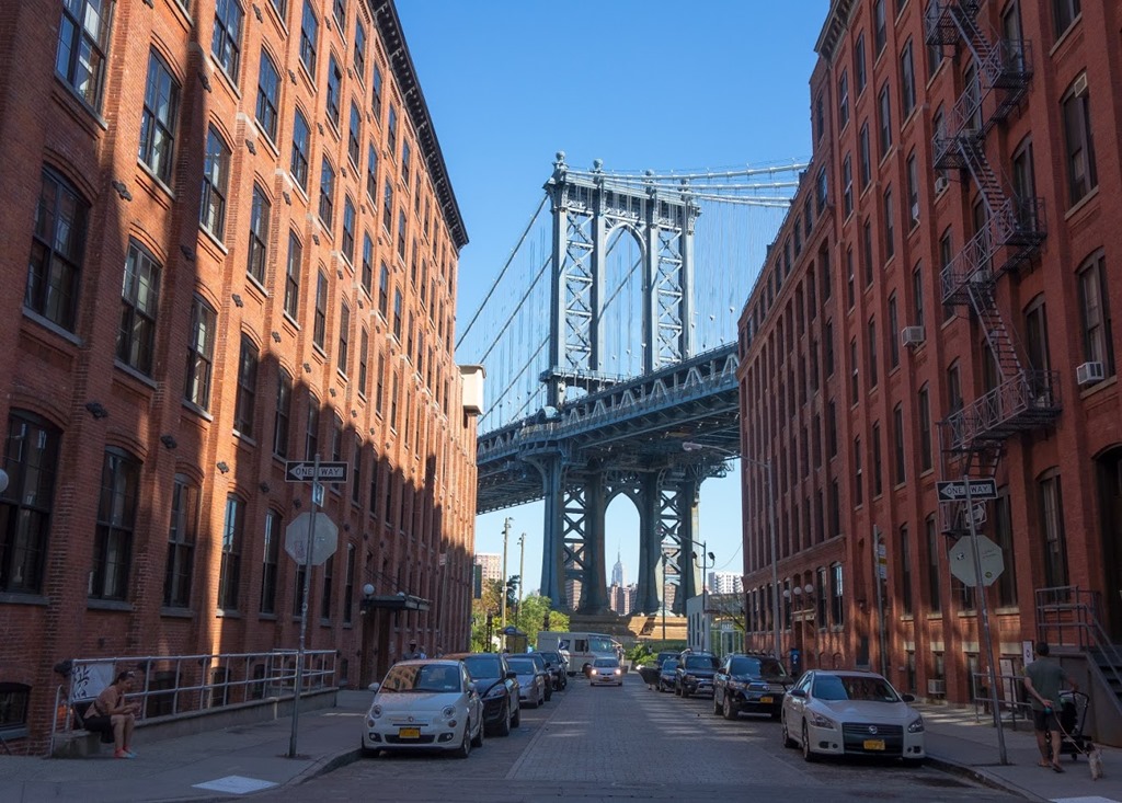 16. ДАМБО зажат между двух мостов: Бруклинским (на фото) и Манхэттенским.